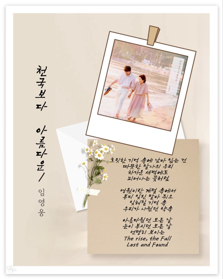임영웅 가수의 새내기 팬입니다. 가수의 노래중 천국보다 아름다운 노래가 2025APAN Star Awards 베스트 ost 수상곡이라던데요가사좀 알고싶어요가사가 담긴 배너지좀 있을까요?